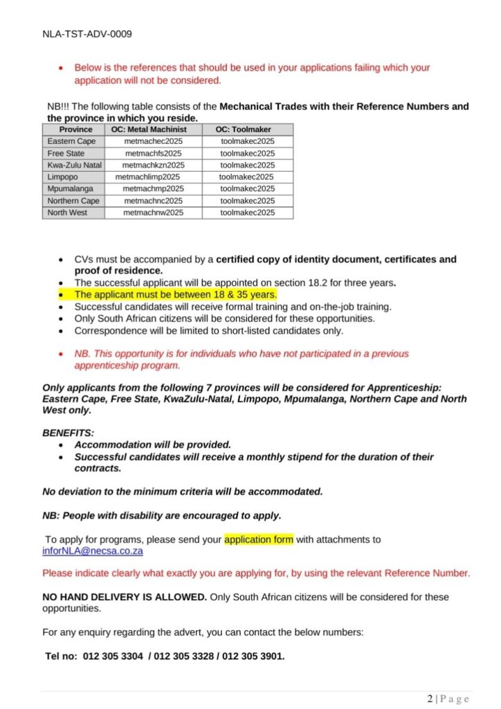 Send your application with the required attachments via email only to: infoNLA@necsa.co.za