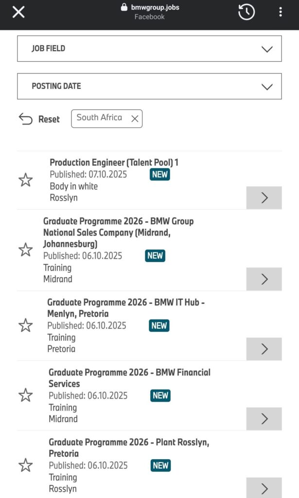 All applicants MUST apply through the BMW Career Portal by creating a comprehensive profile. Please attach your CV, ID copy, Academic Record/Transcript, Qualification certificate, Matric Certificate, or any relevant Certificates for your qualification as part of your supporting documents when applying.