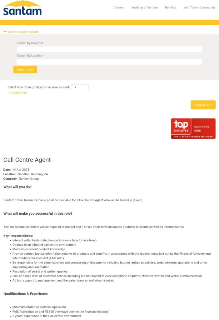 Santam Travel Insurance has a position available for a Call Centre Agent who will be based in (Illovo)