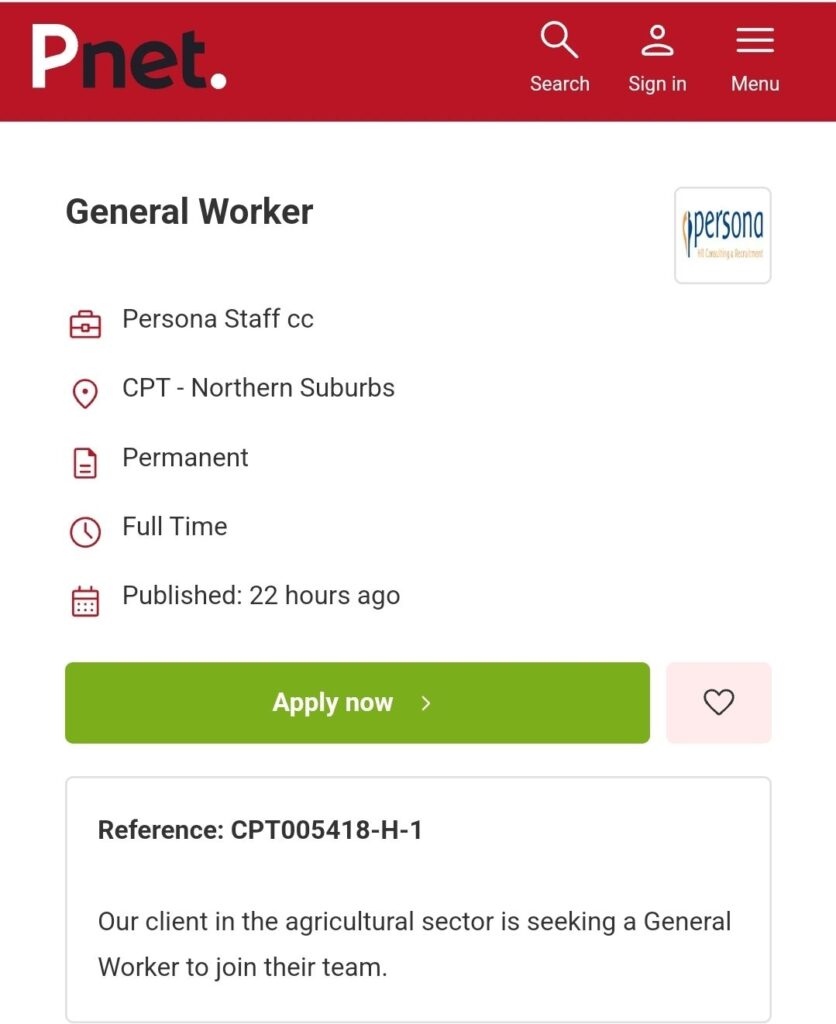 To apply, please send your CV with your salary expectations to hannah@personastaff.co.za