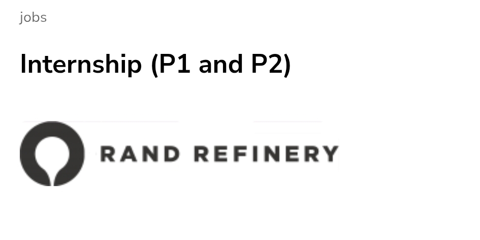 Rand Refinery is offering an exciting 12-month internship opportunities for motivated individuals looking to gain valuable workplace experience in a dynamic environment and be able to complete their qualification.