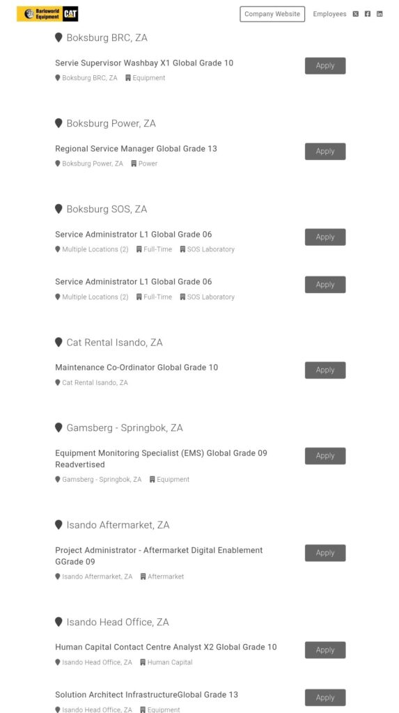 Barloworld Equipment Vacancies ( Apprentice X10, Administrators