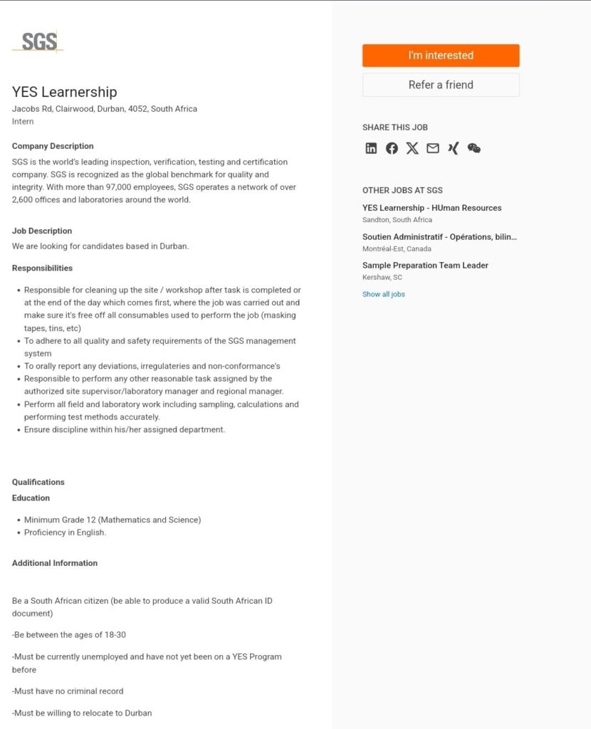- Must be residing in / willing to relocate to – Barberton, Richards Bay & Randfontein