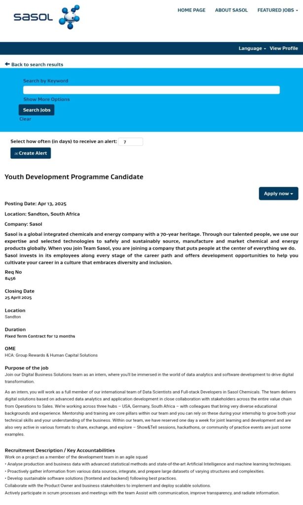 Duration: Fixed Term Contract (Learnership) for 12 months